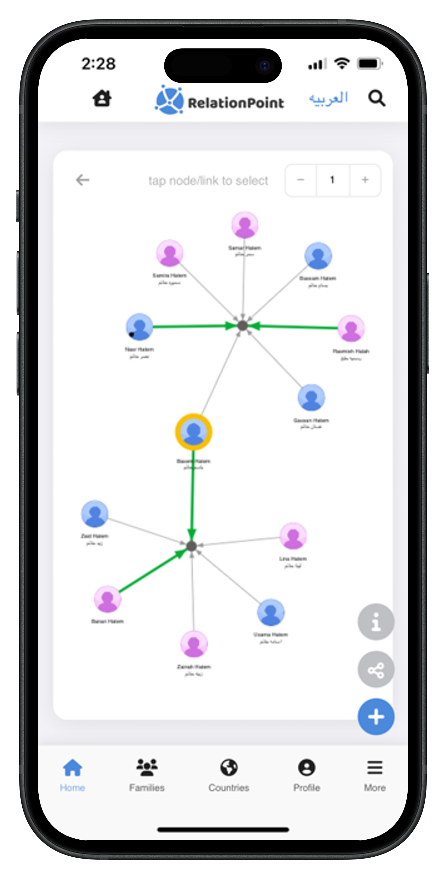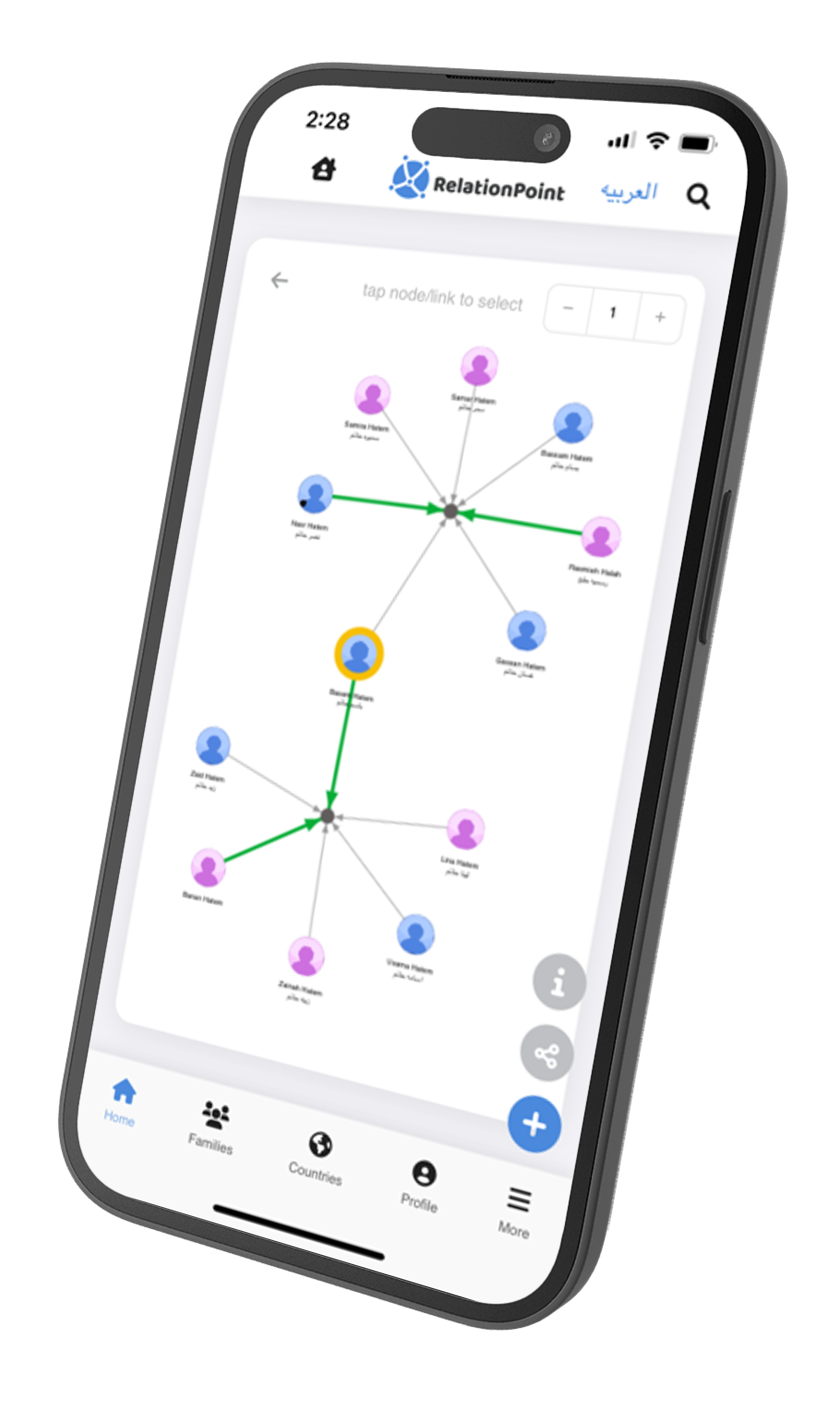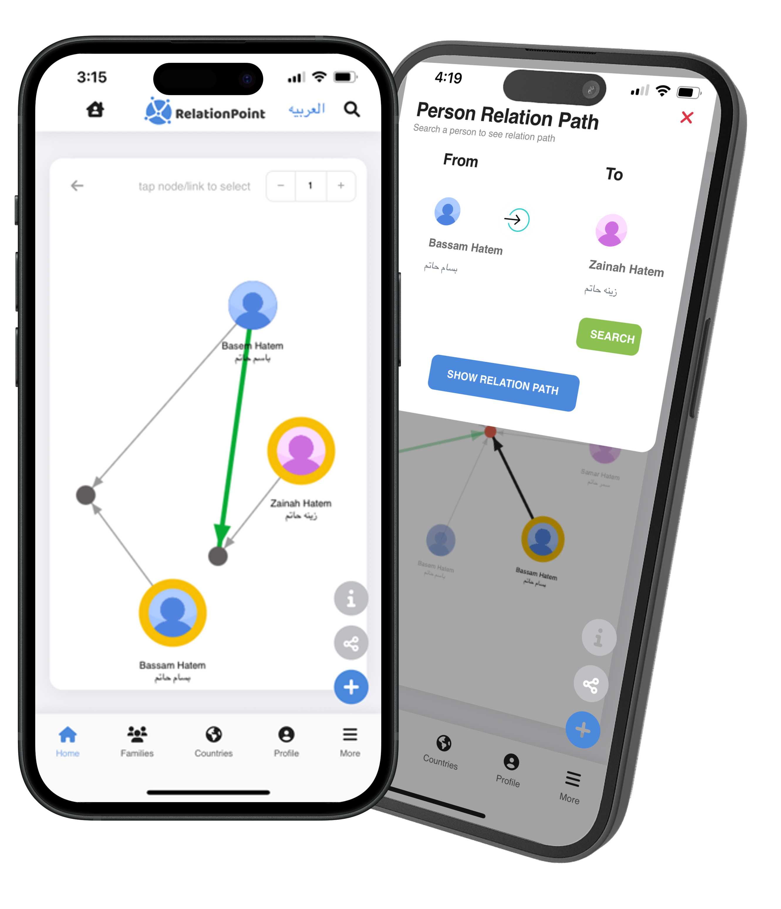 RelationPoint aims to build the most comprehensive human map that is produced by people and verified by people collaboration and consensus. RelationPoint idea was born when I tried to build a site for my father after he passed away. I wanted to present his writings, his life, and his family connections. I could not present the whole family from his father and his mother sides in one view, together with his children families and the family relation with other families through marriage (Nasab). His cousins go with a different last name as they adopted, sometime back, a new family name. Family trees are usually maintained by one individual and are not accurate or complete. People struggle with confusing relation names like great great great... grandfather or third and fourth cousins as they have no ways to visually seeing this. Family trees are missing the household element which is the key to connecting people.