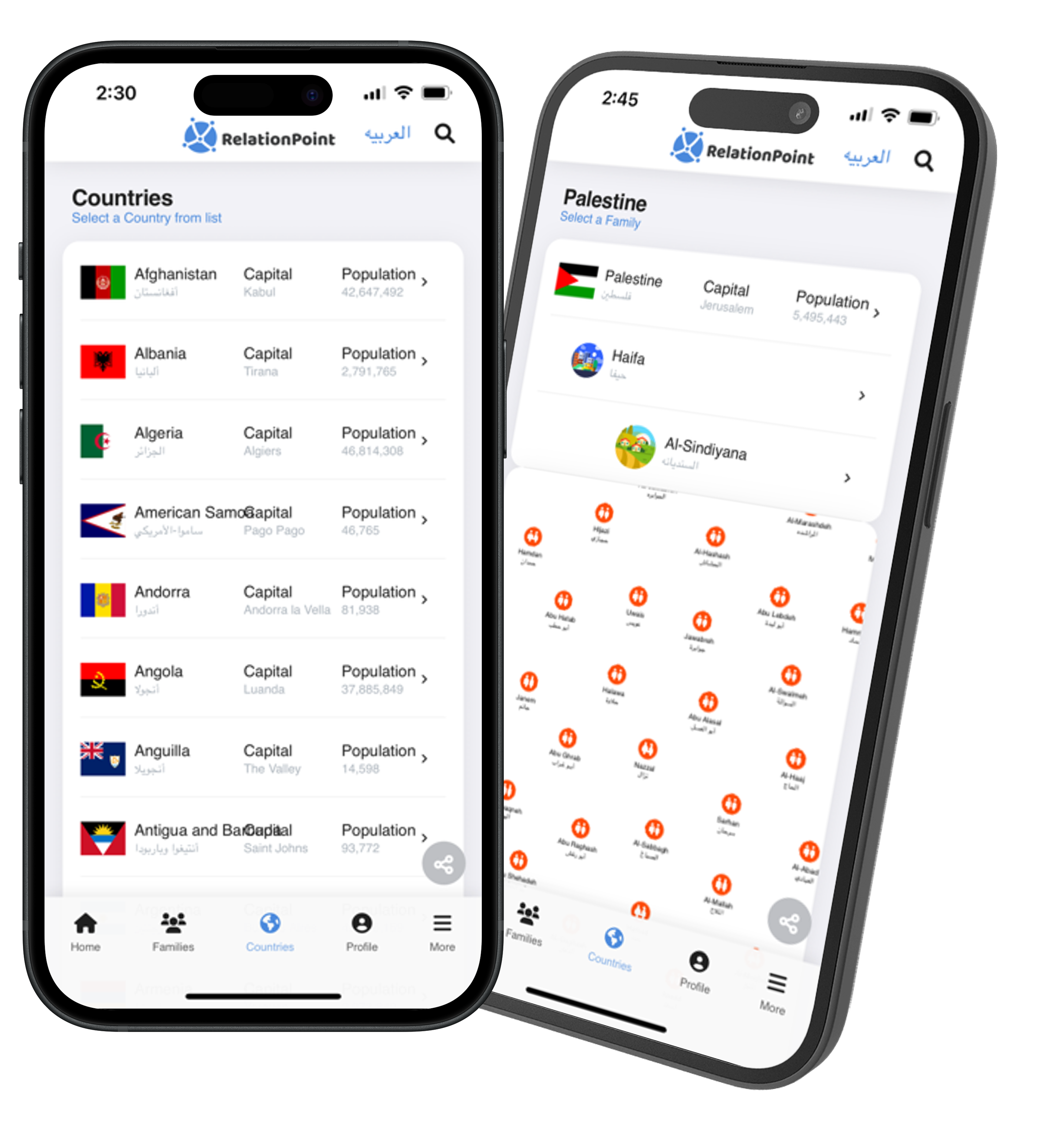 Most people do not know families from their home town. A small village may more families than you think. With RelationPoint, you will be able to now explore families from the same origin. For every family you will get thier dashboard, be able to discover their members, their family to family relations (Nasab) and see common person names in the family. You never know, you may discover cousins or relatives that you did not know before.